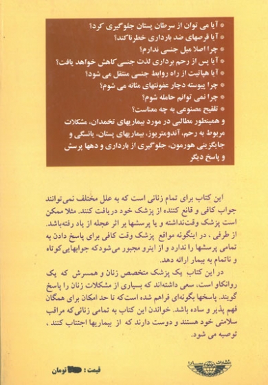 در این کتاب یک پزشک متخصص زنان و همسرش که یک روانکار است، سعی داشته اند که بسیاری از مشکلات زنان را پاسخ گویند. پاسخها بگونه ای فراهم شده است که تا حد امکان برای همگان فهم پذیر و ساده باشد. خواندن این کتاب به تمامی زنانی که مراقب سلامتی خود هستند و دوست دارند که از بیماریها اجتناب کنند، توصیه می شود.